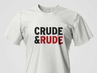 Официалната тениска Crude & Rude представя логото Crude & Rude върху изчистена бяла тениска. Това е всичко.